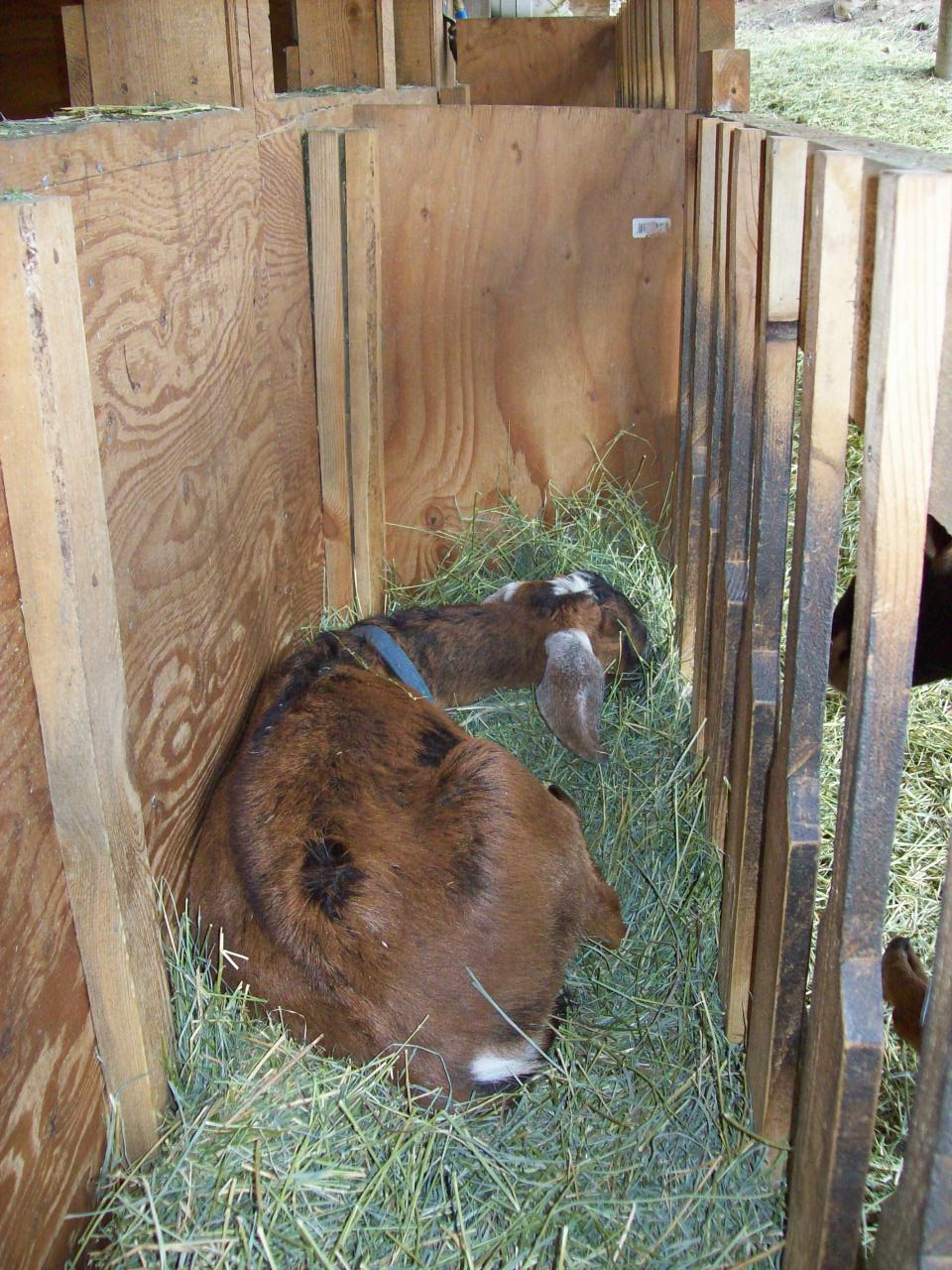 diminutif for pain in the ass. always getting in trouble. She is lucky to be fit and she is one of the only few that can actually get in the feeders, Anyway, she takes nap in there and also sleeps in there at night. Pretty comfy and she is not bothered by the other goats that way.
