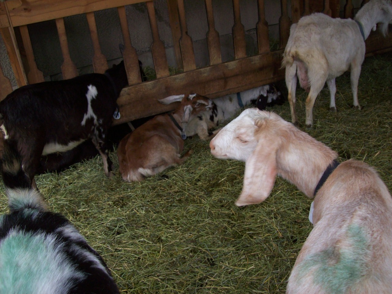 Only the younger goats would fit under the feeders; popular hang out spot for the youger ones.