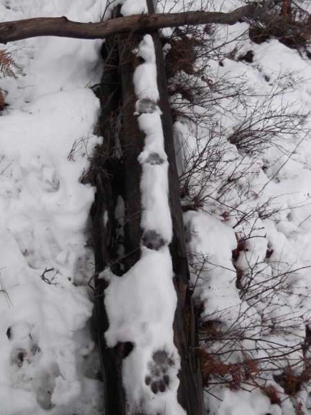 Derek found tracks that he thinks belong to a cougar (after doing some search on the internet). We know they are around because they have been seen in town a while ago. Scary.