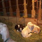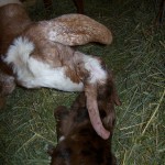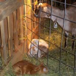 On Saturday we had two mama sheep gave birth, almost at the same time, with three kids and we had we trying to figure out who was who. The plan was that I would hold the lamb and have the mom follow me to a separate pen… Well, of course it did not work out like that because sheep do not like to get close to humans (at least ours are very wild) and in my opinion, sheep are not too bright, too wild and stinky, and the only good thing as far i am concerned is that their milk makes great cheese (sheep have tiny teats and it is not easy too milk!). I do not care for sheep at all (but the cute, tame lamb are okay). Back to my story. I was holding the lamb while Derek, Ed and another guy, Eors, were trying to catch the sheep. I have to say that it was hysterical watching these guys slip in the mud, dive onto the sheep, launch in the air…Derek did a great dive and got the sheep. It was one of the funniest thing I’ve ever seen! I wish I would have a recording of it! Anyway, we figured out the moms and the kids, but one of the mom was rejecting one of her kids…not enough milk for both so we moved the lamb with the goats and after a couple days it seems to be doing good in its new environment.