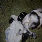 Updates: I just went to check on Miss Lela at 2 p.m., who we thought, still had a baby inside. She started labor before 2 a.m. and was done birthing at 3 p.m., what an experience! Anyhow, i went inside her and felt that the baby’s head was backward and that the shoulders were first (not good!). I spend quiet some time trying to pull the head forward and trying to find a leg to bring forward as well. I was successful pulling the baby out but it came out dead and the eyeballs were missing. Who knows how long it’s been dead. We started cleaning up when after few minutes she started pushing again: 2 back legs first…and a little girl came out. We had to swing her around a bit to help her breath but she seems okay and she has a voice, let me tell you. Pretty amazing that she stayed alive after all this time. 3 out of 4, not bad. It is pretty rare to have four babies and all of them alive. The mom seems to be going well, as well as you can expect for being in labor for so long. Hopefully, that’s it for Lela : )