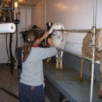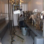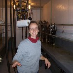 When we got to about 25 goats needing to be milked, with switch from hand milking to automated milking. Milking is a huge part of the day on a dairy farm and it takes about 3 hours in the morning and 3 hours in the evening, for two people, to get it down. We usually start at 6 am, take the goats to the barn down below, search for the ones that don’t get grains and separate then from the others, give grain to half and start milking them, then do the other half. We have to hand milk the goats that gave birth within 10 days (because of the colostrum in the milk, we cannot use it) and feed it to the kids. It takes quiet some time to hand milk and by the end my hands are pretty tired. The funny thing is that I am so much better milking with my left hand, go figure why. The procedure for milking using the machine is pretty easy. First, you squirt some milk from both teats for each goat in a cup with a strainer to make sure everything looks okay (no chunks, blood, etc.). Then you dip each teats in an iodine solution for 30 seconds, dry with a clean paper towel and either hand milk or hook up the machine to the teats. When we are done milking the goats (we do 8 at a time), we massage their udder with essential oil (they really enjoy it), dip their teats in another iodine solution (without drying this time) and send them free. Then cleaning up duties start: in the milking parlor, in the milk room, scooping out poop in the barn, feeding the older kids. It takes about 3 hours. Twice a day. Seven days a week. For over 300 days a year. And it is only the milking part. It does not include birthing, taking care of the animals, cheese-making or selling of the produce. Honestly, i can’t really see myself doing it. But at the same time i love being around the goats and i know better to not say “i will never do that” so i will keep my mouth shout for now…